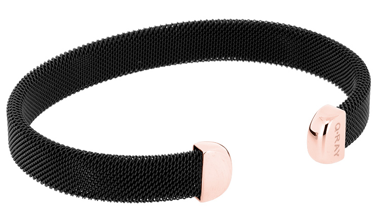 Created with an interlocking mesh, the Midnight Bracelets are stainless steel bands that have an IP black powder coating baked onto the band. This one-of-a-kind design features stainless steel terminals polished to a rose gold finish in 7 3/4 to 8 1/2 circumference wrist size.