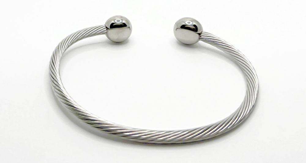 The Silver Deluxe Noir is made with a silver plated flexi-steel band and adds high polished steel terminals with black noir inserts. Extremely flexible for easy removal and adjustments.